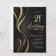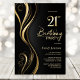 Invite your friends and loved ones with this modern black and gold 21st birthday party invitation. The customisable text area in this invitation template allows you to effortlessly include all the necessary details for your special birthday celebration, including the date, time, venue, and RSVP information. A variety of paper types and corner styles are available for your unique invitations, along with the option to download if you prefer a digital format.