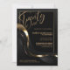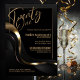 Celebrate your milestone 21st birthday in style with our chic and sophisticated black party invitation. With its customisable text, you can personalise the invitation. This invitation features a fine gold frame that encloses the text, adding a touch of luxury to your special occasion. The gold and grey abstract wavy ribbon design adds a modern and stylish look to the invitation and creates a sense of flow and movement. The overall design is understated yet beautiful, making it perfect for those who prefer a more refined aesthetic.