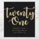Minimalist 21st birthday black and gold wine bottle label in modern, chic and elegant typography style. Featuring age "twenty one" in sparkly gold. Customise with age, name, and year of birth.