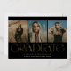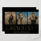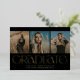 This modern three photo graduation announcement features elegant typography "graduate" in raised gold foil with three photos on a black background. On the back there is invitation text for graduation party / open house which can also be deleted if not needed. Background and text colours are all customisable. This simple yet elegant design really allows your photos to shine by keeping the details minimal.