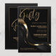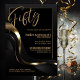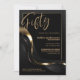 Celebrate your milestone 50th birthday in style with our chic and sophisticated black party invitation. With its customisable text, you can personalise the invitation. This invitation features a fine gold frame that encloses the text, adding a touch of luxury to your special occasion. The gold and grey abstract wavy ribbon design adds a modern and stylish look to the invitation and creates a sense of flow and movement. The overall design is understated yet beautiful, making it perfect for those who prefer a more refined aesthetic.