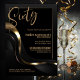 Celebrate your milestone 60th birthday in style with our chic and sophisticated black party invitation. With its customisable text, you can personalise the invitation. This invitation features a fine gold frame that encloses the text, adding a touch of luxury to your special occasion. The gold and grey abstract wavy ribbon design adds a modern and stylish look to the invitation and creates a sense of flow and movement. The overall design is understated yet beautiful, making it perfect for those who prefer a more refined aesthetic.