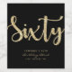 Minimalist 60th birthday black and gold wine bottle label in modern, chic and elegant typography style. Featuring age "sixty" in sparkly gold. Customise with age, name, and year of birth.