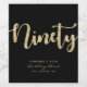 Minimalist 90th birthday black and gold wine bottle label in modern, chic and elegant typography style. Featuring age "ninety" in sparkly gold. Customise with age, name, and year of birth.