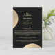 A modern black and gold semi circle abstract wedding design. This contemporary design is ideal for all seasons Spring, Summer, Fall and Winter weddings. A stylish gold foil look design in a trendy black and gold theme. A classy wedding itinerary program design with modern elements. Matching wedding stationery items and other wedding invite formats are also available.