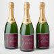 Modern Black Gold Agate Burgundy Wedding Sparkling Wine Label