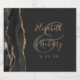 This modern wedding design features a black watercolor agate and gold faux glitter border on the left edge. Personalise it with the couple's names in elegant gold-coloured handwriting script over a large grey ampersand on an off-black background, with the wedding date below.