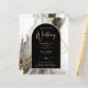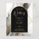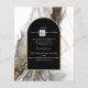 Introducing our luxurious black and gold wedding stationery collection, featuring a stunning smokey black and white with gold accents agate look backdrop and arch frame for the text. This design is perfect for couples who want to add a touch of elegance and sophistication to their wedding stationery.
