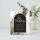 Introducing our luxurious black and gold wedding stationery collection, featuring a stunning smokey black and white with gold accents agate look backdrop and arch frame for the text. This design is perfect for couples who want to add a touch of elegance and sophistication to their wedding stationery.