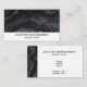 A business card with a beautiful image of dark abstract agate stone. Colours swirl in waves. Main colours are black, blue-grey with a faux-gold ribbon running through the design. Modern and trendy.