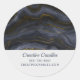 Business stickers with a beautiful image of dark abstract agate stone. Colours swirl in waves. Main colours are black, blue-grey with a faux-gold ribbon running through the design. Modern and trendy.