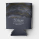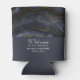 Wedding can coolers with a beautiful image of dark abstract agate stone. Colours swirl in waves. Main colours are black, blue-grey with a faux-gold ribbon running through the design. Modern and trendy.