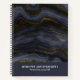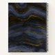 Spiral notebook with a beautiful image of dark abstract agate stone. Colours swirl in waves. Main colours are black, blue-grey with a faux-gold ribbon running through the design. Modern and trendy.