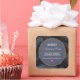 Soap or candle sticker personalised with your details and scent name. A beautiful image of dark abstract agate stone. Colours swirl in waves. Main colours are black, blue-grey with a faux-gold ribbon running through the design. Modern and trendy.. A white circle with a faux gold foil border layered over top with your personalised text written inside.