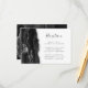 The left-hand edge of this elegant modern wedding reception enclosure card features a black watercolor agate border trimmed with faux silver glitter. The title is in handwriting script, with the customizable text below in charcoal gray copperplate font on a white background. The reverse side features a matching black and silver agate design.