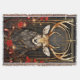 Black, gold and red are the basic colours in this modern deer and antlers surrounded by red roses