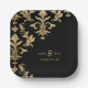 Modern Black Gold Damask Wedding Reception Decor Paper Plate