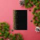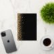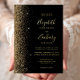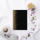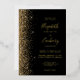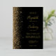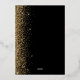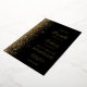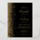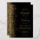 The left-hand edge of this elegant modern wedding invitation features a gold faux glitter design. The customisable text combines real gold foil handwriting, copperplate and italic fonts on a black background. The reverse side features a matching black and gold glitter design.