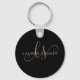 Modern Black Gold Feminine Script Monogrammed Key Ring