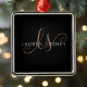 Modern Black Gold Feminine Script Monogrammed Metal Ornament. Easily personalise this modern elegant metal ornament with your custom monogram and name.