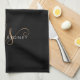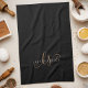 Modern Black Gold Feminine Script Monogrammed kitchen towel. Easily personalise this modern elegant kitchen towel with your custom monogram and name.