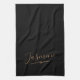 Modern Black Gold Feminine Script Name kitchen towel. Easily personalise this modern elegant kitchen towel with your custom name.