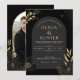 Modern Black & Gold Floral minimal Elegant Photo Invitation