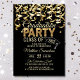 Modern graduation invitations in a gold and black colour hue. Streamers with faux gold foil confetti. Faux gold glitter letters and graduation cap / hat. Perfect for that hip student party. Back of card has CLASS of YEAR with room to add school name.