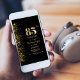 This modern black with gold glitter 85th birthday party invitation features a customisable text area that allows you to effortlessly include all the necessary details for your special birthday celebration, including the date, time, venue, and RSVP information. A variety of paper types and corner styles are available for your unique invitations, along with the option to download.