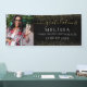 A modern graduation banner featuring your grads photo and chic script typography and gold glitter on a black background. Designed by Thisisnotme©