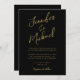 Modern Black Gold Hand Lettered Script Wedding Invitation