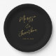 Modern Black Gold Hand Lettered Script Wedding Paper Plate