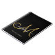 Modern, trendy girly black and gold custom personalised monogrammed spiral notebook. This simple elegant design features white cursive hand lettering name with swashes in white and a huge hand-writing monogram script in gold colour on black background. This feminine, pretty notebook is a perfect gift idea for business, professional, school, birthday party , wedding and any party or occasion for someone that like girly and modern styles. If you need help or matching item please contact to designer.