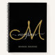 Modern Black Gold Handwritten Script Monogram Notebook