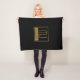 Modern Black & Gold Initial Monogram Fleece Blanket