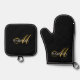 Modern Black Gold Monogram Script Oven Mitt & Pot Holder Set