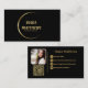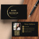 This design features a stylish, professional business card with a black background and modern, elegant, gold coloured text.