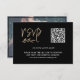 Create a stylish statement with this chic black and gold wedding RSVP card. With elegant calligraphy, a simple faux gold botanical accent, and a convenient QR code, this design combines sophistication and modern functionality. Perfect for a contemporary wedding, it provides your guests with a refined and effortless way to RSVP in style.
