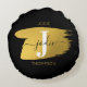 Modern Black & Gold Script Monogram Initial Round Cushion