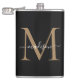 Modern Black Gold Stylish Monogram Girly Script Hip Flask