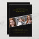 Modern black gold three photo collage birthday invitation