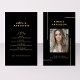 The design features a sophisticated black background complemented by luxurious gold accents. The elegant gold lines, professional graduate photo, and clear layout for contact and social media information combine to create a design that is modern yet formal, sleek, and professional. This makes it ideal for a new graduate entering the professional world, effectively combining contemporary aesthetics with a formal touch to ensure it is both eye-catching and professional.