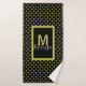 Modern Black Golden Circle Pattern Monogram Bath Towel Set
