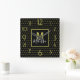 Modern Black Golden Circle Pattern Monogram Square Wall Clock