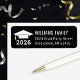 Modern custom address label design features a white grad cap with tassel, class year (can be customised), return address text and black background colour that can be customised to match any school or invitation colours.