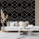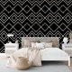 Modern Black Greige Ivory Geometric Squares Art Wallpaper