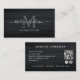 Customise this "Modern Black Grey Brush QR Code Social Media Business Card", featuring dark grey brush strokes on a black background, a monogram of your name and full name in a beautiful modern script, professional title, contact information, social media username, social media icons (Instagram, Facebook) address, and QR code. Please get in touch with the store designer for further customisation if needed.