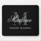 Modern Monogram Black White Grey Script Name mouse pad for your new home office.