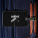 This simple, elegant black luggage tag with your first name in a trendy script font in white typed over your first initial in a modern cap font in grey on one side and a slide in card for your name, address and phone number on the other would look fabulous on your suitcases. It's stylish and trendy and yet very classic.