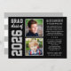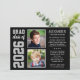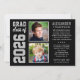 Announce your high school graduate in style with this multi-photo graduation announcement and party invitation. Two-sided "Now and Then" card features two photos of the grad (a current picture and older one from their first day of school) with a simple and masculine design with sports jersey inspired lettering. Black, silver grey, and white colours can be customised to match school colours. A pattern of white stripes dresses up the back of the card.